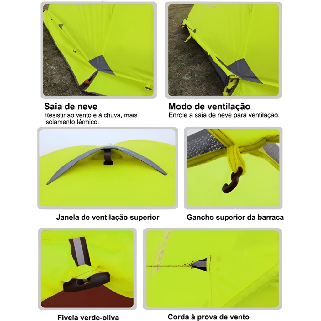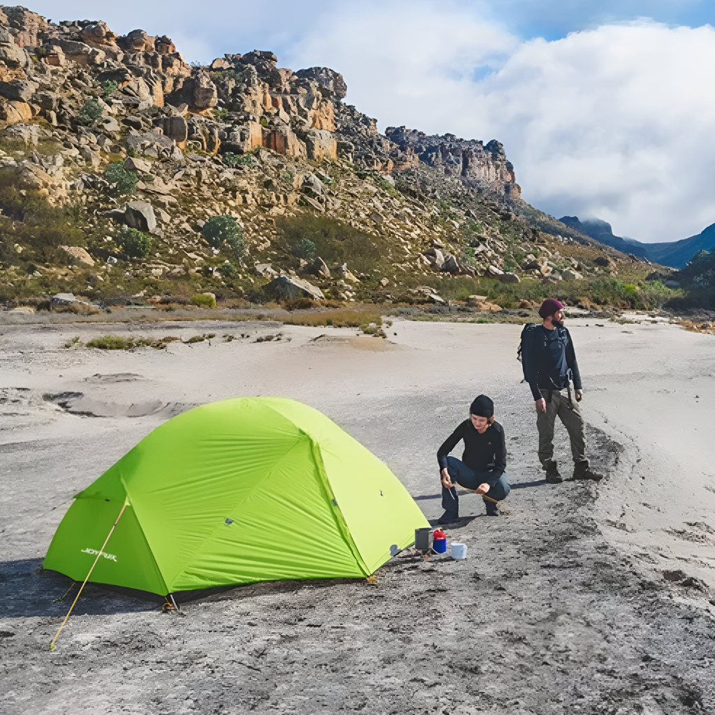 Seja em uma trilha desafiadora, um acampamento familiar ou uma escapada de fim de semana, a Barraca JOYFOX foi projetada para quem não abre mão de proteção total, peso mínimo e espaço inteligente. Feita com materiais premium e pensada para os amantes da natureza, ela é a parceira ideal para suas maiores aventuras.