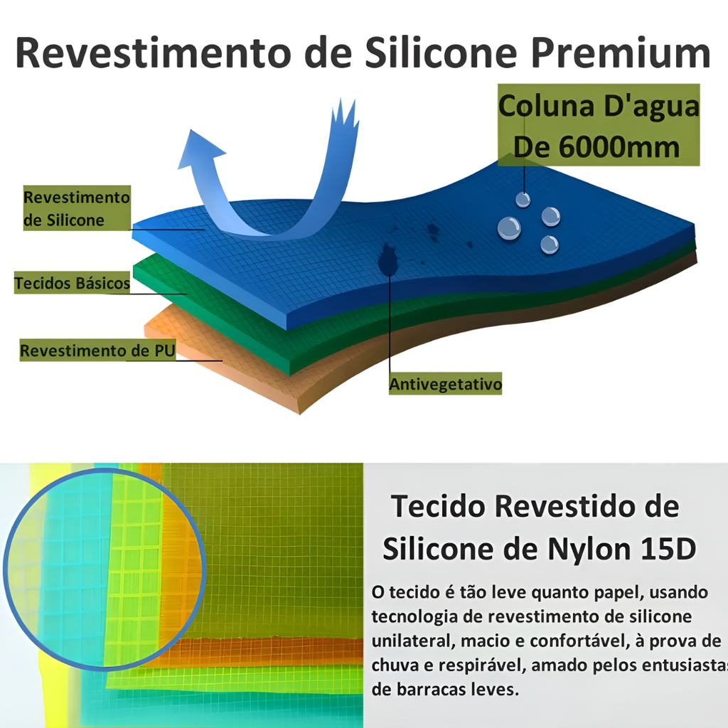 Material do tecido: Nylon ripstop com revestimento de silicone