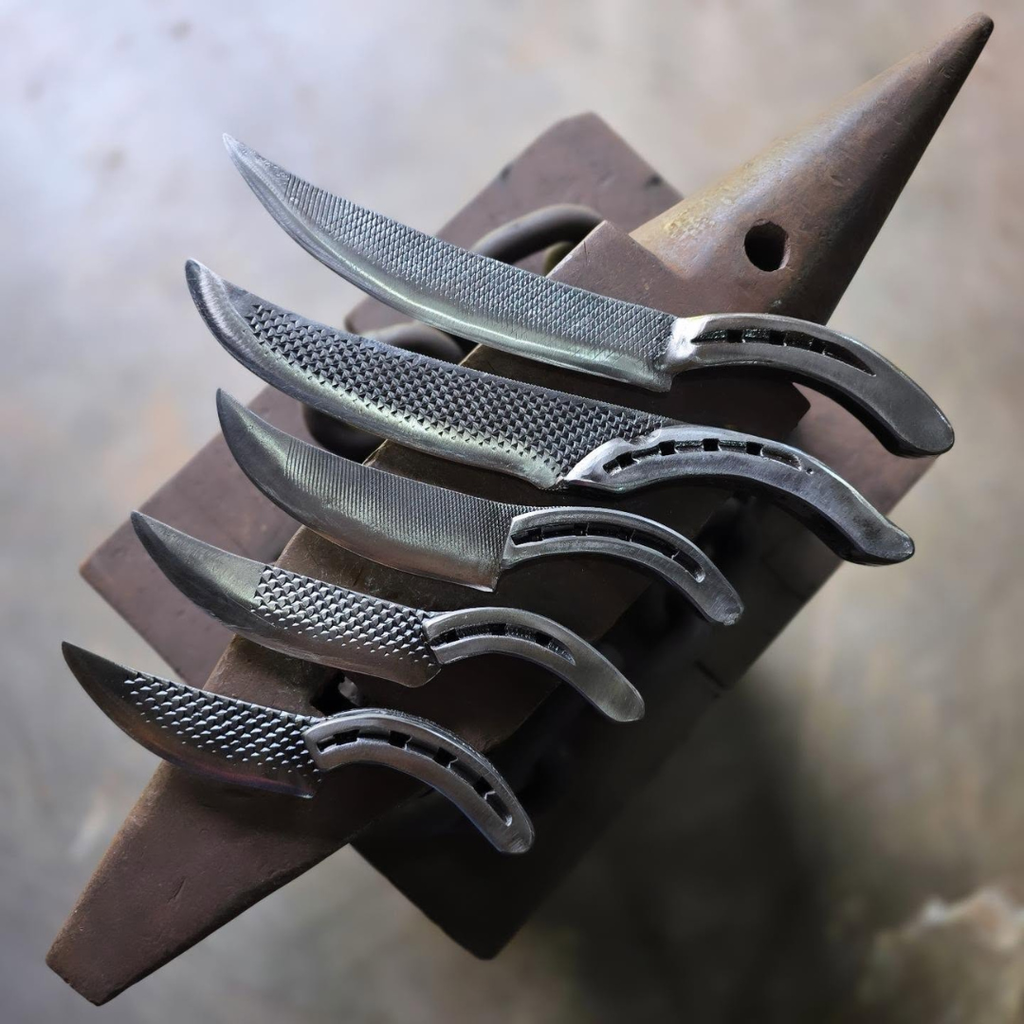 Kit Facas Artesanal em Lima de Ferrador – Lâmina Forjada Texturizada