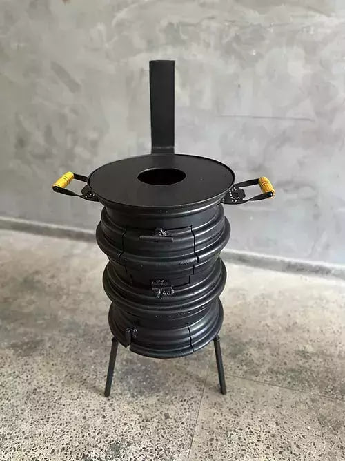 Flange removível em aço, encaixado na boca do fogareiro, perfeito para apoiar panelas, caldeirões ou grelhas.